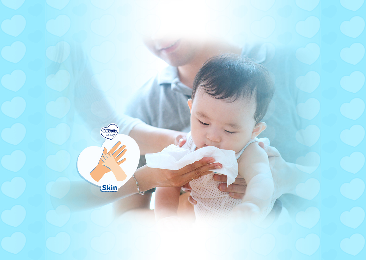 3. Membersihkan kulit bayi dengan tisu basah yang aman