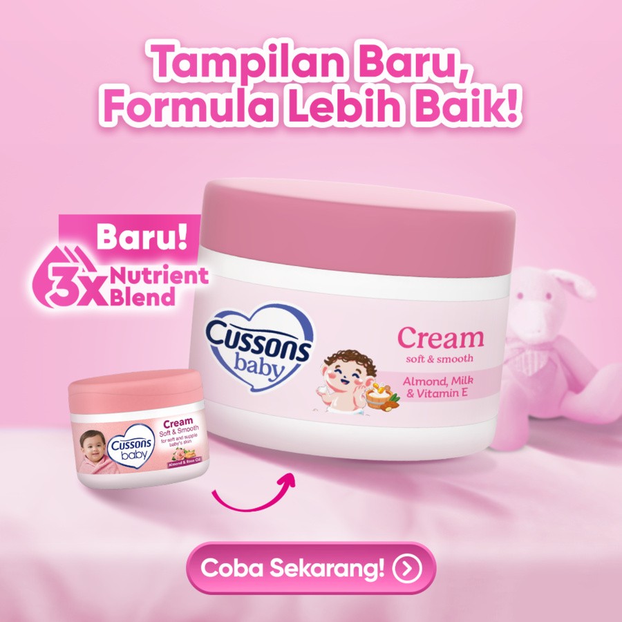 Untuk kulit halus dan lembut yang lebih optimal, gunakan Cussons Baby Milk Bath Soft & Smooth, Cussons Baby Lotion Soft & Smooth, dan Cussons Baby Cream Soft & Smooth secara rutin.